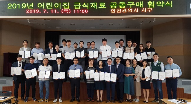 인천 서구는 지난 11일 어린이집 급식재료 공동구매 업체로 선정된 31개 업체와 업무협약을 체결했다.