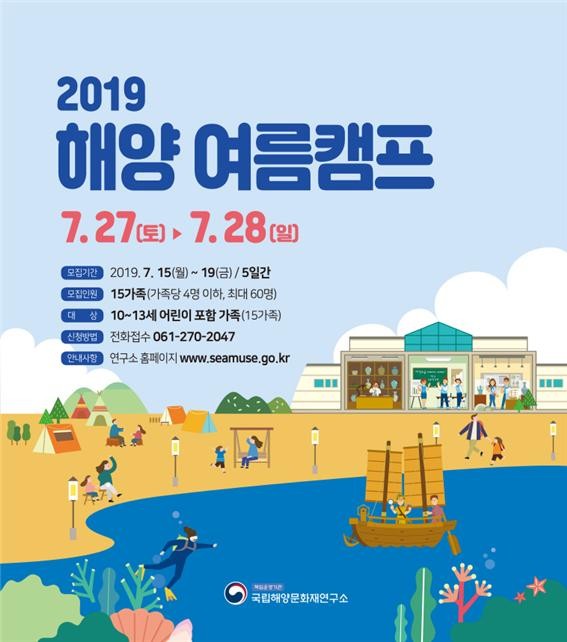 문화재청 국립해양문화재연구소는 여름방학을 맞아 초등학생과 가족을 대상으로 ‘2019 해양여름캠프’를 오는 27일부터 28일까지 1박 2일로 운영한다.