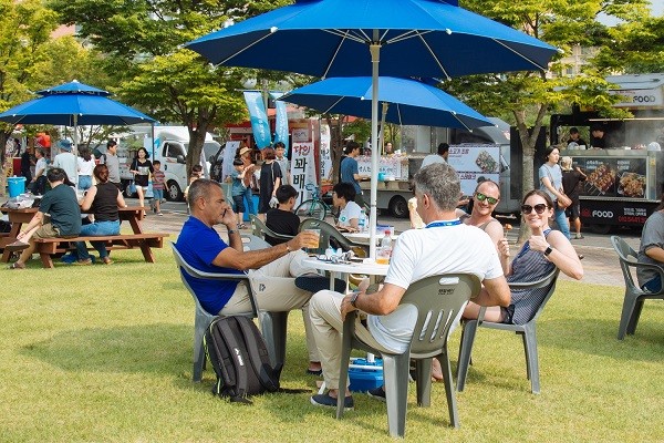 먼저 이곳에는 치킨, 닭꼬치, 스테이크, 핫도그 등 다양한 음식을 파는 푸드트럭이 선수단과 관람객의 오감을 유혹한다.