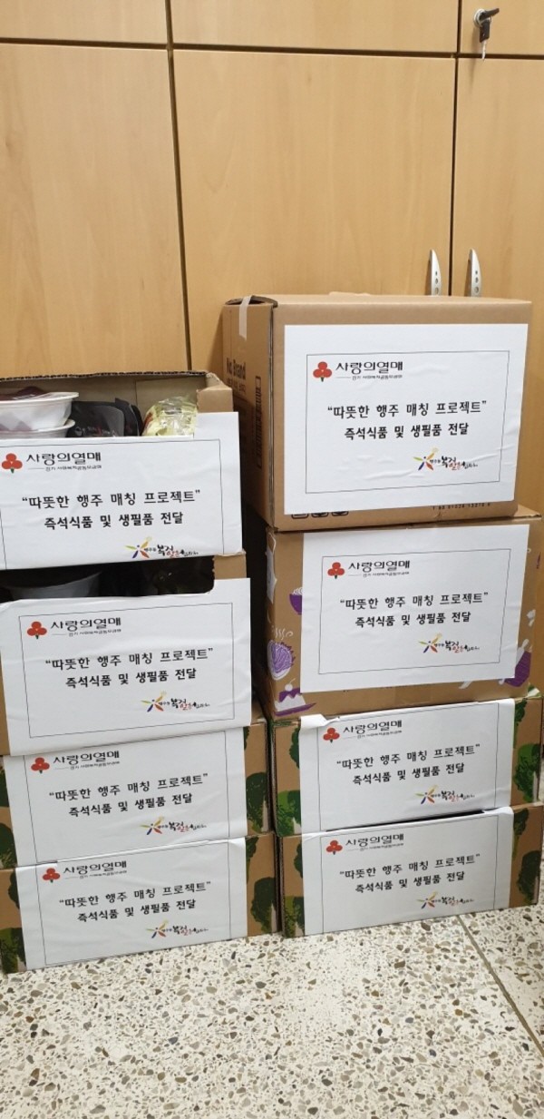 ‘따뜻한 행주매칭 프로젝트’ 사업은 매월 2만원 상당의 즉석식품을 장애, 질병 등으로 스스로 음식마련이 어려운 저소득 위기 가구에게 물품을 지원해주는 사업이다.