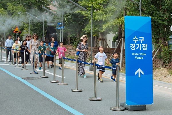 정민곤 광주시 시민안전실장은 “안전한 수영대회를 치르기 위해 특교세 65억원을 투입해 쿨링포그와 쿨링존, 그늘막, 야외경기장 관람석 햇빛 차양시설 등 선수·응원단·관람객 맞춤형 폭염대책을 추진했다”며 “대회 기간 동안 폭염이나 풍수해로 인한 피해가 없도록 만전을 기하겠다”고 말했다.
