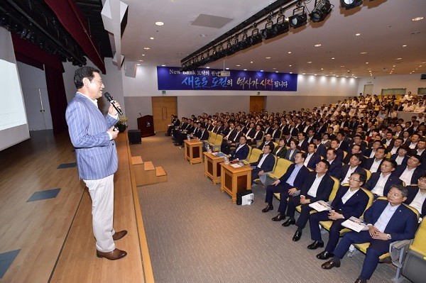 이용섭 광주광역시장은 15일 광주은행 본점 대강당에서 이 은행 임직원들을 대상으로 진행된 ‘혁신으로 다진 1년, 광주 대한민국 미래로’라는 주제의 특강에서 자동차공장 법인에 대한 광주은행의 투자에 고마움을 표시했다.
