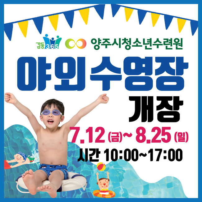 양주시는 오는 8월 25일까지 덕계동 소재 양주시청소년수련원 야외수영장을 운영한다고 밝혔다.