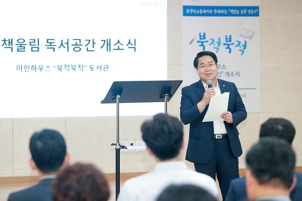 오세현 아산시장은 지난 15일 관내 아동양육시설인 아인하우스에서 열린 ‘책울림’ 개소식에 참석해 축사를 전하고 관계자를 격려했다.