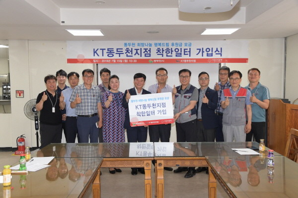 동두천시는 지난 15일 오전 10시 30분 공동모금회와 협업으로 진행하는 동두천시 ‘희망나눔 행복드림’ 착한일터 가입식을 KT 동두천지사에서 실시했다.