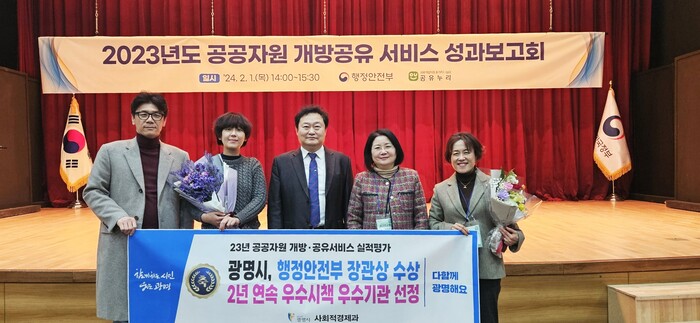 광명시는 행정안전부가 226개 기초지방자치단체를 대상으로 시행한 ‘2023년 공공자원 개방.공유서비스 전국 지방자치단체 실적평가’에서 2년 연속 종합평가 우수기관에 이름을 올렸다.