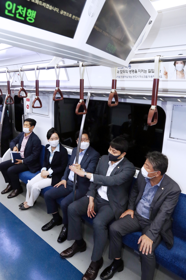 조석환 수원시의회 의장과 복지안전위원회 이미경 위원장, 박명규 의원, 염태영 수원시장, 조무영 수원시 제2부시장 및 관계자가 참석한 가운데 청명역을 출발해 오목천역까지 시승을 마치고 고색, 오목천 역사 및 상부공원화 현장을 점검했다.