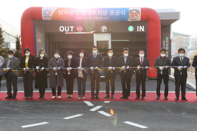 국비와 도·시비를 합쳐 150억 원이 투입된 삼덕공원 공영주차장은 연면적 6,865㎡ 지하2층 구조로 주차대수는 196면이다. 주차공간 유무를 확인할 수 있는 초음파센서와 무인정산기 등 스마트주차관제시스템을 갖추고 있다.