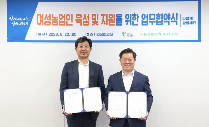 광명시(시장 박승원)는 22일 시청 영상회의실에서 농협중앙회 광명시지부와 여성농업인 육성 및 지원을 위한 업무 협약을 맺었다. 협약식에는 박승원 광명시장과 노대성 농협중앙회 광명시지부장 및 관계자 등 10여 명이 참석했다.