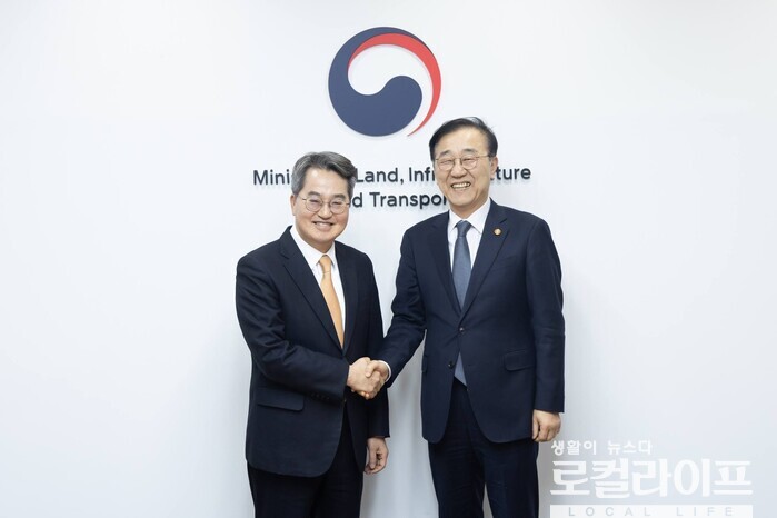 | ▲ 김동연 경기도지사(왼쪽)와 김윤덕 국토교통부 장관(오른쪽)이 인사를 나누고 있다. (사진출처=김동연 페이스북) |