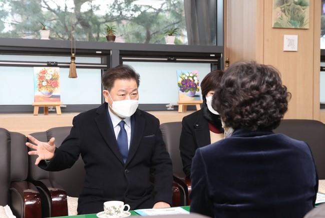 사진/박승원 광명시장은 12월 1일 명문고등학교를 방문해 방역 상황을 점검하고 시험 종료시간까지 수험생이 안전하게 시험에 임할 수 있도록 철저히 준비할 것을 당부했다<광명시청 제공>