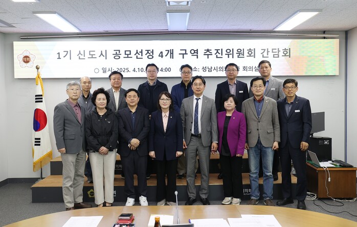 성남시의회 도시건설위원회(위원장 박은미)는 4월 10일 1기 신도시 공모선정 4개 구역 재건축 추진위원회와 사업성 확보를 위한 대책 마련 간담회를 개최하였다.