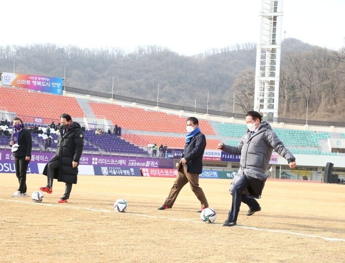 이어 '축구도시 안양' 축구를 통해 도시브랜드의 가치를 높여가도록 2022년에도 함께해 주시길 부탁드린다고 말했다.