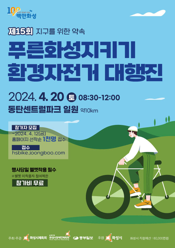 화성시(시장 정명근)가 오는 4월 20일 시민의 건강 증진과 환경보존의식 제고를 위한 ‘제15회 푸른화성지키기 환경자전거 대행진’을 개최한다.