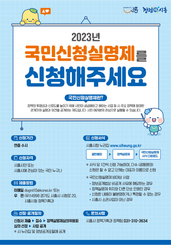 자세한 사항은 시흥시청 누리집 또는 시흥시청 정책기획과(031-310-3634)로 문의하면 된다.