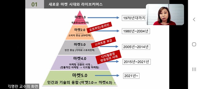 사진/ 김명란 용인예술과학대학교 교수가 온라인 강연을 하고 있다.(사진제공=수원시)