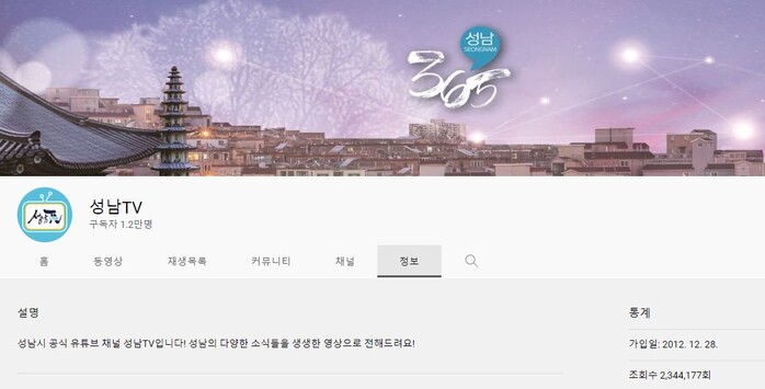 2012년 개설하여 올해로 10년차인 유튜브‘성남TV’는 다양한 장르의 고퀄리티 영상을 제작. 홍보하여 현재 1만 2천명의 구독자를 보유(2021년 구독자는 7,323명)하여 1년새 64%의 괄목할 성장을 보였다.