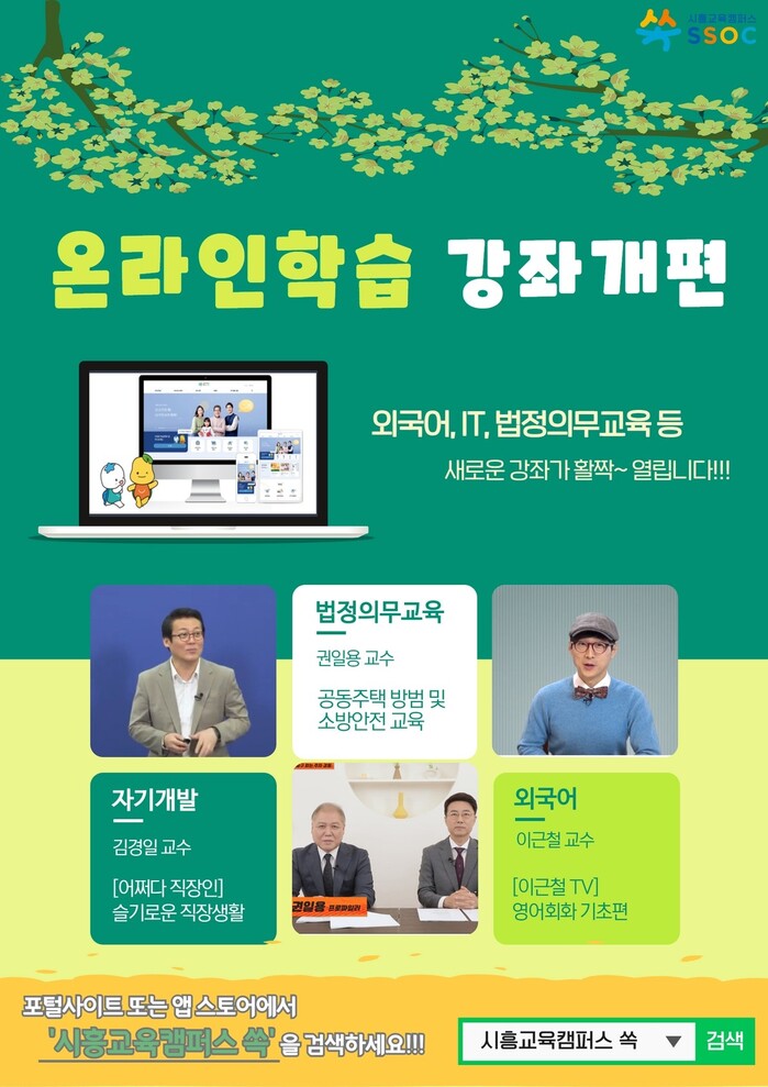 시흥시(시장 임병택)는 누구나, 언제, 어디서나 학습 가능한 교육환경 조성을 위해 운영 중인 배움‧소통‧참여 온라인 학습공간 「시흥교육캠퍼스 쏙(SSOC)」 일부 강좌를 개편하기로 했다.