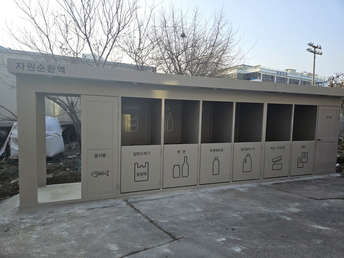 자원순환역은 종량제 봉투, 재활용품 7종(병, 캔, 투명 페트병, 플라스틱, 비닐, 스티로폼, 종이)을 분리배출할 수 있는 공간이다.