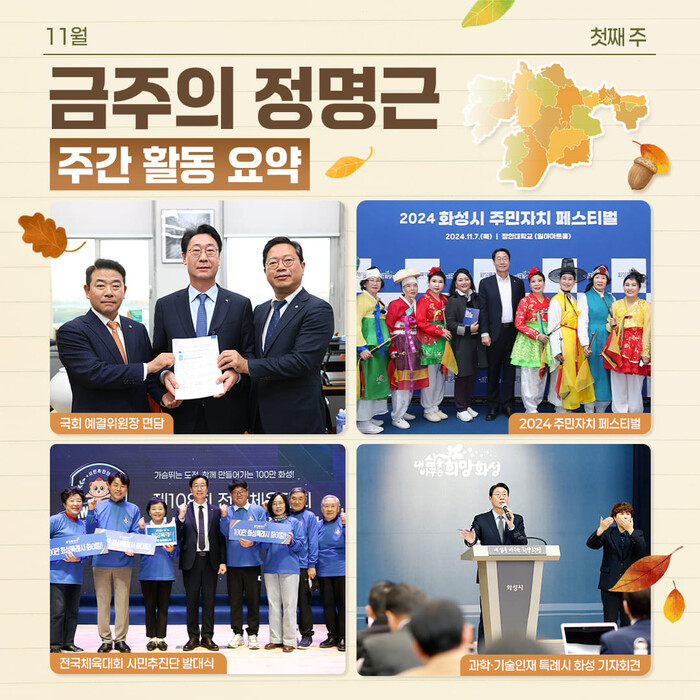[화성=로컬라이프] 송준형 기자 = 정명근 화성시장은 10일, 자신의 페이스북을 통해 정신없이 지나간 일주일, 금주의 정명근을 다음과 같이 전했다.