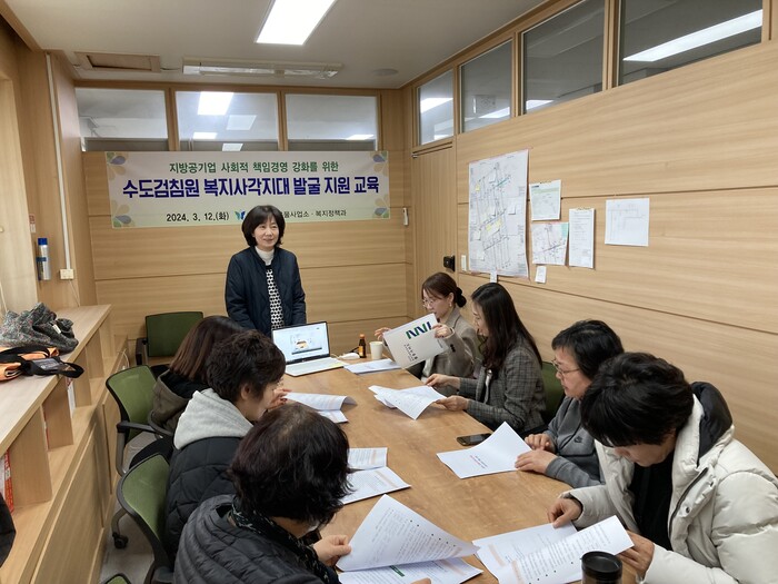 이를 위해 맑은물사업소에서는 12일 검침원을 대상으로 ‘찾아가는 복지교육’을 실시했다. 교육은 위기이웃 발굴 기준, 위기이웃 발견 시 적절한 조치 방법 등에 대한 내용으로 진행됐다.