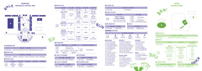 이 밖에도 ‘Stain to Groove 스트릿댄스 배틀대회’(23일), K-POP 100여곡을 랜덤 재생해 단체로 춤을 추는 ‘랜덤플레이댄스’(23·24일) 등 부대 행사들도 이어진다. 특히 남성 댄스크루 서바이벌 ‘스트릿 맨 파이터’에서 활약했던 뱅크투브라더스, 저스트절크 영제이 등이 스트릿댄스 배틀대회와 크라운컴페티션의 심사위원과 게스트로 참여해 춤축제의 높아진 위상을 보여줄 예정이다.