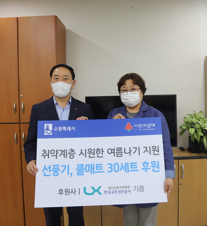 한국국토정보공사 경기남부지역본부가 “수원지역 취약계층 이웃들에게 전달해 달라”며 수원시에 냉방용품 30세트를 기부했다.
