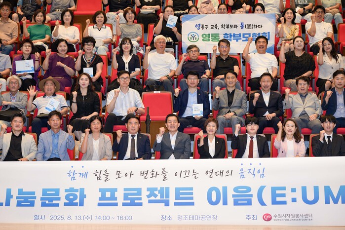 이재준 수원시장은 13일 수원 정조테마공연장에서 열린 ‘2025 나눔문화 프로젝트 이음(E:UM)’ 출정식에서 “시민의 힘을 모아 연대와 협력을 바탕으로 지역사회에 따뜻한 변화를 만들어주시길 바란다”고 말했다.