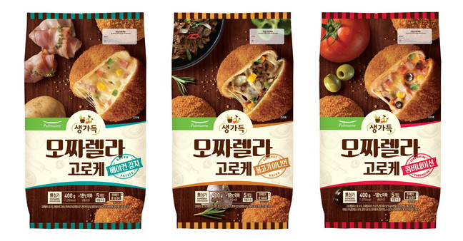 ‘생가득 모짜렐라 고로케’ 3종은 고로케 빵 안에 모짜렐라 치즈를 40%나 함유한 신개념 간식이다. 전자레인지에 1분 10초만 조리하면 겉은 바삭, 속은 촉촉한 고로케가 완성된다.