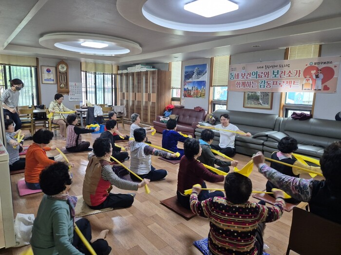 ‘홀몸 어르신 특화프로그램, 동의보감’(동네 보건의료와 보건소가 함께하는 감동 프로젝트)은 파장동 파장경로당에서 진행한다. 대상은 홀몸 노인, 만성질환이 있는 노인 등 30명이다.