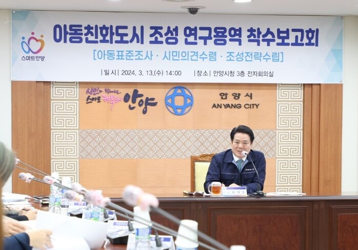 보고회 자리에서 최대호 안양시장은 “지난해 4분기 우리나라 합계출산율이 0.65명으로 역대 최저를 기록했다”면서 “한 명 한 명이 소중한 아이들이 행복하고 올바르게 성장할 수 있는 환경을 조성하는 것은 기성세대의 가장 큰 의무이자 책임”이라고 강조했다. 그러면서 “용역을 통해 아동의 실태와 요구를 정확하게 파악해 실효성 있는 정책을 마련하겠다”고 말했다.
