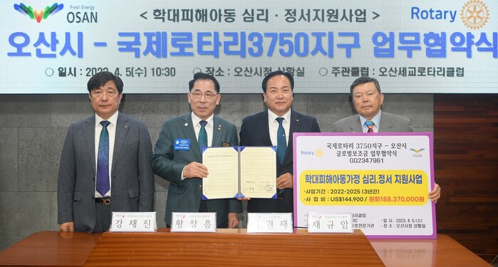 이와 관련해 이 시장은 이날 자신의 페이스북을 통해 오산시가 국제로타리3750지구와 학대피해 아동과 그 가족의 온전한 회복을 위해 협력하기로 하고 협약을 맺었다고 전했다.