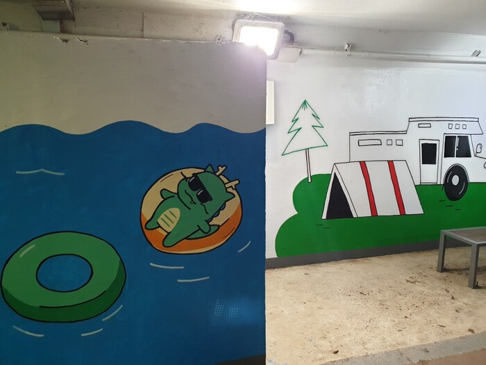 벽화는 계절에 맞는 그림과 색감을 담았다. 봄은 벚꽃을 상징하는 분홍색으로 시작해 여름은 물놀이하는 모습을 파란색으로, 가을은 단풍색, 겨울은 크리스마스 트리, 썰매, 스키 등으로 나타냈다.