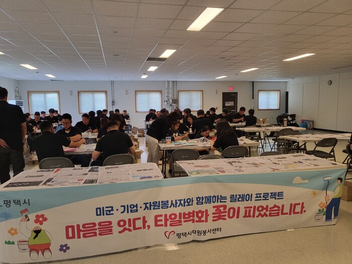 평택시자원봉사센터는 지난 1일(금) 캠프 험프리스에서 미8군 지원단 부대원 65명이 참여한 타일 채색 재능기부 봉사활동을 실시했다고 밝혔다.