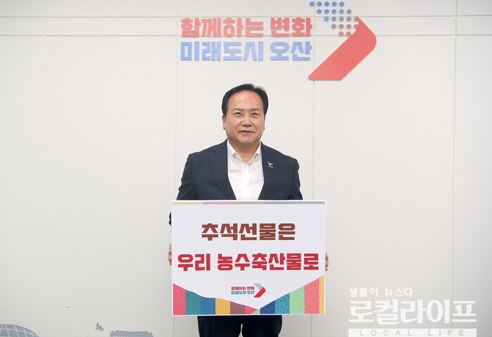 [오산=로컬라이프] 송준형 기자 = 이권재 오산시장이 ‘추석선물은 우리 농수축산물’로 챌린지에 동참했다.
