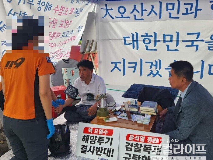 [오산=로컬라이프] 송준형 기자 = 성길용 오산시의회 의장이 이신남 전 청와대 비서관의 단식 현장을 방문해 단식 중단을 요청했다.