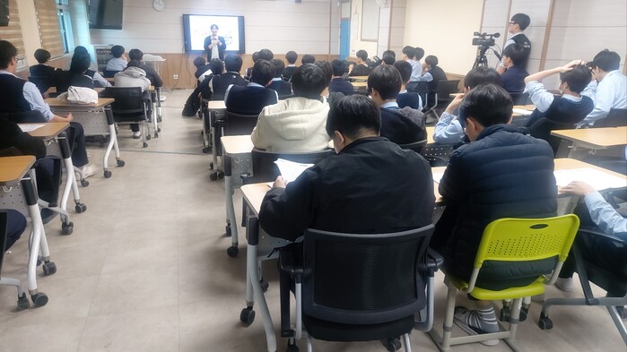 사진/장안구보건소가 청소년을 대상으로 흡연·음주 예방교육을 하고 있다.(사진제공=수원시)