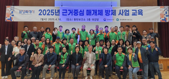화성특례시(시장 정명근)가 16일 화성시 3개 보건소 방제업무 관계자와 자율방재단원들을 대상으로 ‘2025년 근거중심 매개체 방제 교육’을 실시했다.