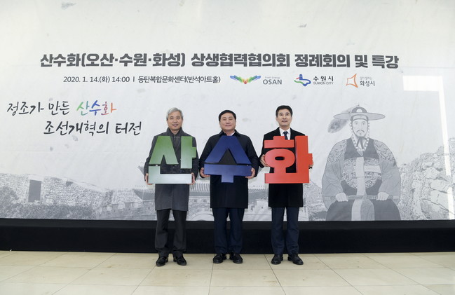 [오산=로컬라이프] 송준형 기자 = 오산시와 수원시 화성시는 1월 14일 동탄복합문화센터 일원에서 산수화 상생협력협의회(이하 산수화 협의회) 제1회 정례회의를 개최하고 곽상욱 오산시장을 산수화협의회 대표위원장으로 선출했다.