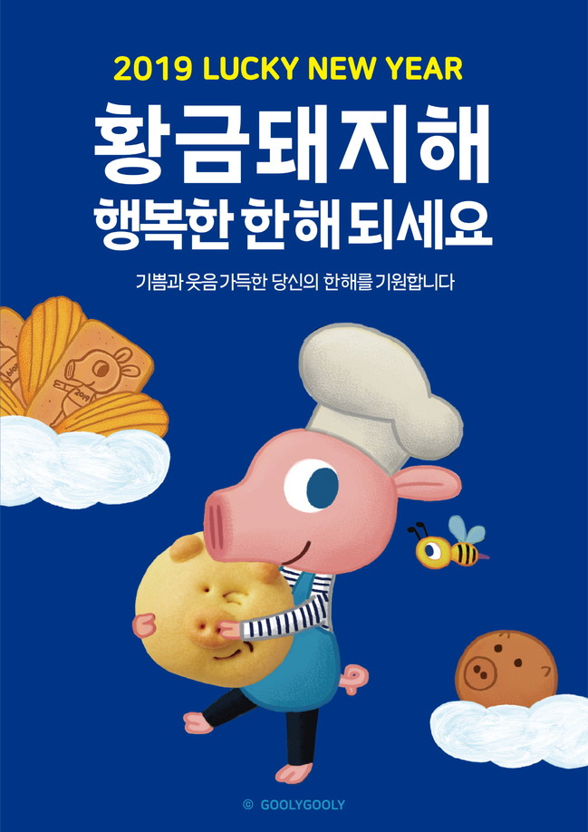 이 외에도 △’굴리굴리 프렌즈'의 돼지 캐릭터인 ‘데이지’가 그려진 패키지에 부드러운 마들렌을 담은 ‘행복한 돼지 마들렌’ △딸기, 플레인 두가지 맛으로 바삭하게 구운 쿠키에 ‘데이지’를 인장으로 새겨넣은 ‘행복한 돼지 쿠키’ △굴리굴리 캐릭터 머랭을 케이크 위에 올린 신년 케이크 ‘행복해도 돼지~2019’ 등도 선보인다.