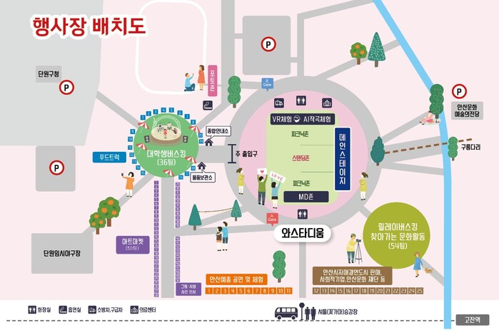 아울러, LED 무대 옆에는 안산시 유관기관 및 자매결연도시 등이 참여하는 홍보·특산품 판매부스 등도 마련된다.