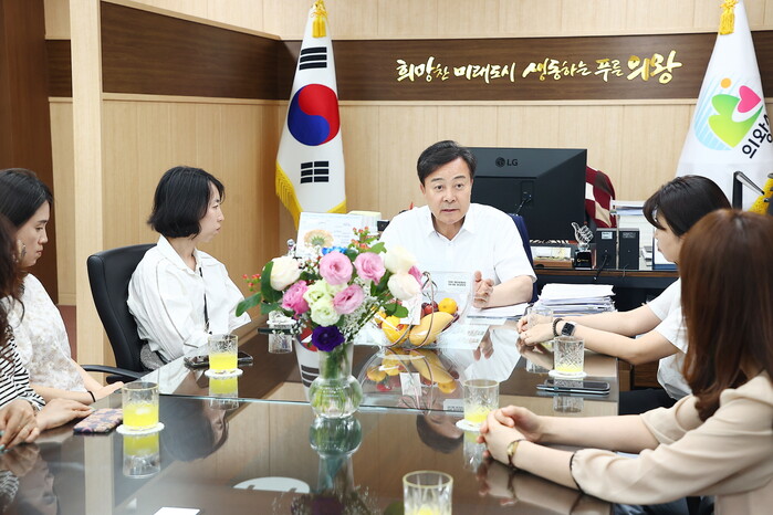 김성제 의왕시장이 12일 관내 학부모들과 의왕 내손중.고등학교 설립과 관련한 간담회를 가졌다.