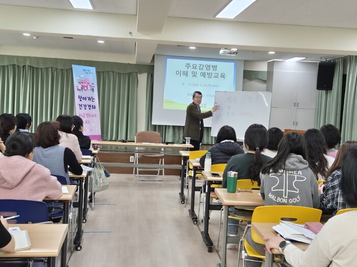 지난 25일 경동원 보육교사를 대상으로 영유아 감염성 질환 예방 교육을 했다. 보육환경에서의 감염병 예방과 관리를 강조하며 감염성 질환의 종류와 전파 경로·예방 수칙·응급 대처법 등을 설명했다.