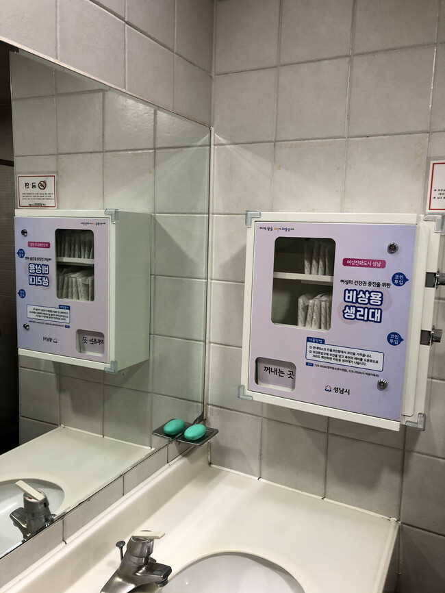 성남시는 생리대를 ‘공공재’로 인식하는 시민의식이 확산해 이에 부응하려고 생리대 자판기를 설치했다.