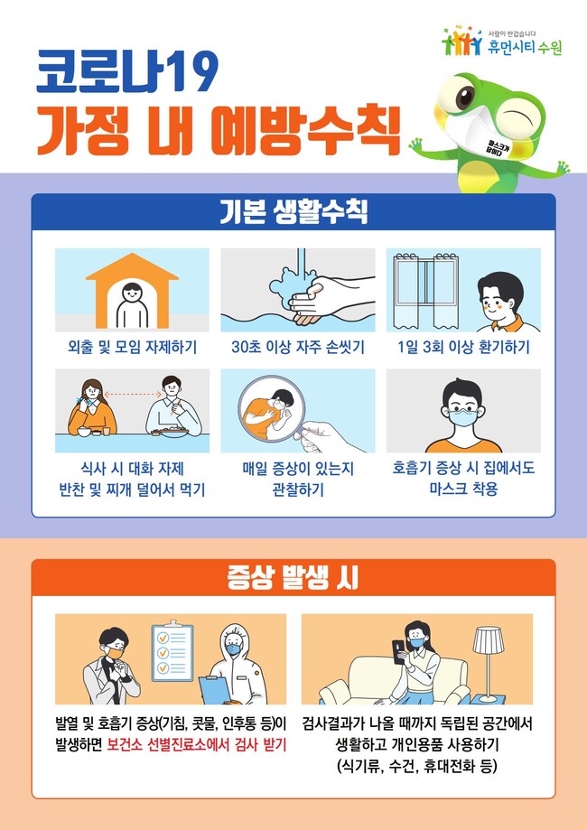수원시가 가정 내 코로나19 예방수칙과 증상이 있을 때 행동요령을 담은 홍보물을 제작해 시민들에게 배부했다.