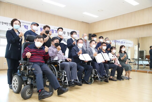 [로컬라이프] 안양시는 장애인 인식개선 사업 일환으로 ‘턱없는 동네 만들기’ 협약식을 24일 동안구 귀인동행정복지센터에서 진행했다고 밝혔다.