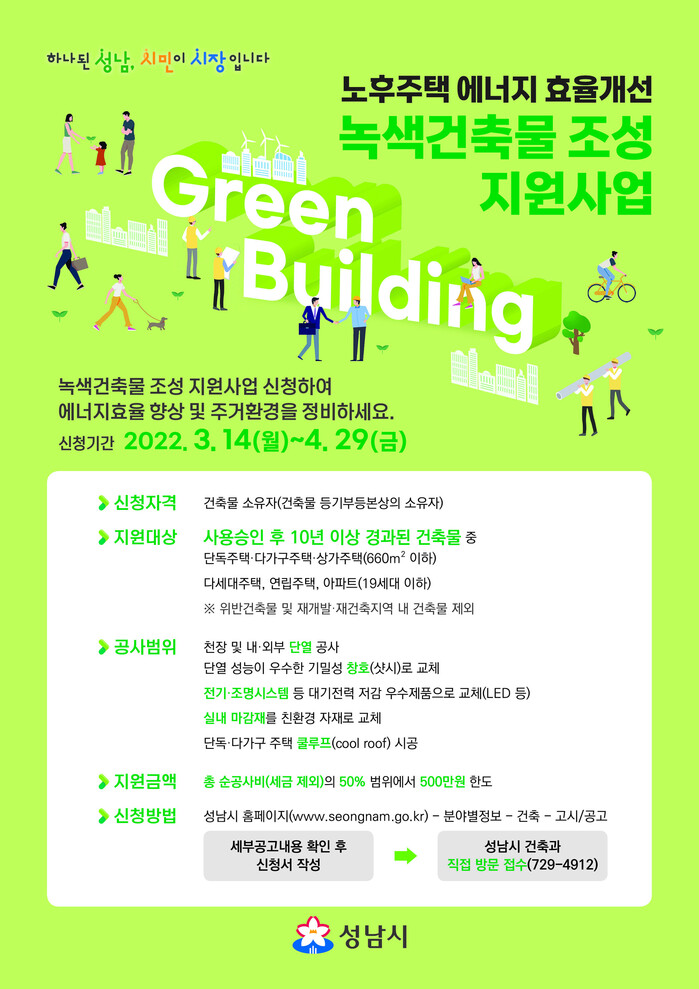 성남시는 올해 1억원을 투입해 ‘녹색건축물 조성 지원사업’을 편다.