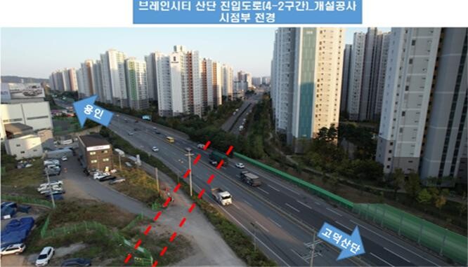 브레인시티 산업단지 진입도로(4-2구간) 개설공사는 총 사업비 479억(전액 국비 지원), 폭 25m, 총 연장 840m, 지하차도 200m 규모의 도로를 개설하는 사업으로 오는 2026년 5월 준공을 목표로 하고 있다.