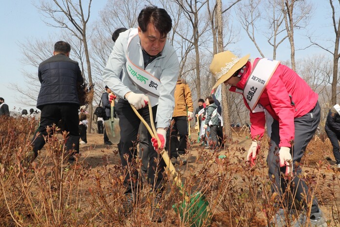 이날 행사는 철쭉동산과 초막골생태공원 초막동천폭포사이의 임야에서 하은호 시장과 국회의원,시·도의회 의원 등 공무원200여 명이 참석해 진행됐으며,산수유와 팥배나무,영산홍,자산홍 등8,060본의 나무를 심었다.