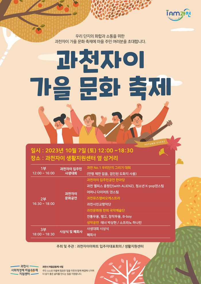 이날 행사는 과천자이아파트 입주자 대표회의와 생활지원센터가 주최가 되어 과천자이 주민들이 하나가 되는 화합과 소통의 장으로 펼쳐진다.